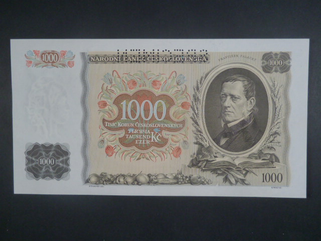 1000 Kč 1934 série L, 1x perf. SPECIMEN