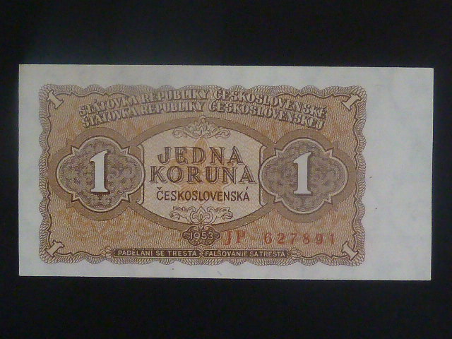 • 1 Kčs 1953 série JP, vélké písmena, tiskárna STC Praha