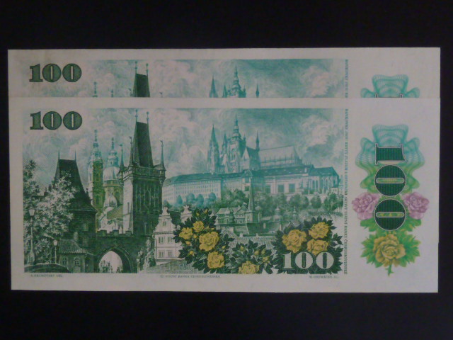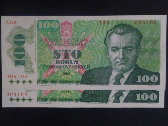 • 100 Kčs 1989 série A 30, dvě čísla po sobě